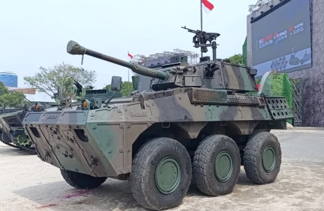 During the Jakarta event, Indonesia’s state-owned PT. Pindad showcased the production version of its 6x6 Badak (in Polish: rhinoceros) fire support vehicle, equipped with the SSP-1 OBRA-3 vehicle self-protection system supplied by PCO S.A.